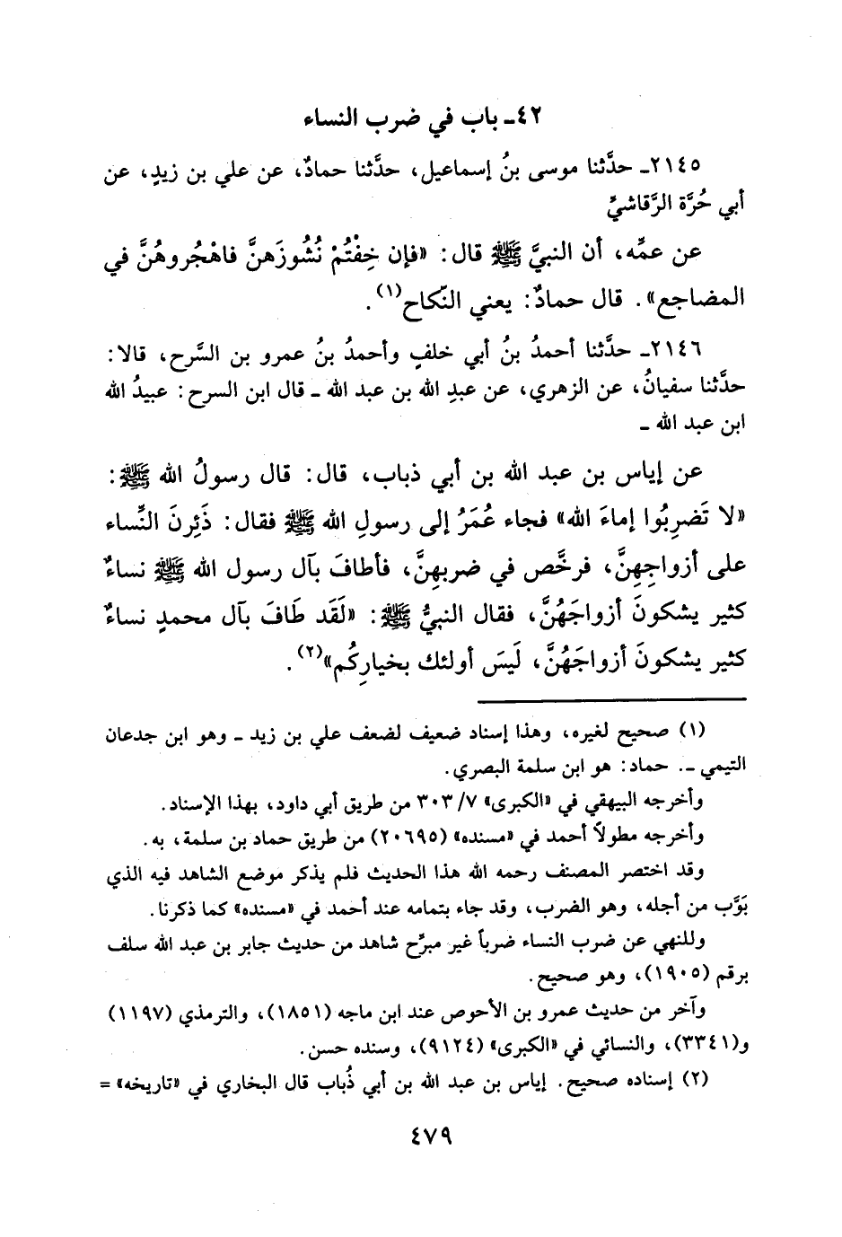 وللنهي عن ضرب النساء ضرباً غير مبرِّح شاهد من حديث جابر بن عبد الله سلف برقم (١٩٠٥)، وهو صحيح.