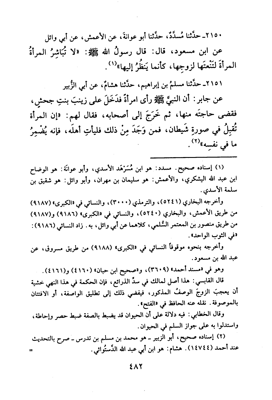 ٢١٥٠ - حدَّثنا مُسدَّدٌ، حدَّثنا أبو عوانةَ، عن الأعمش، عن أبي وائل