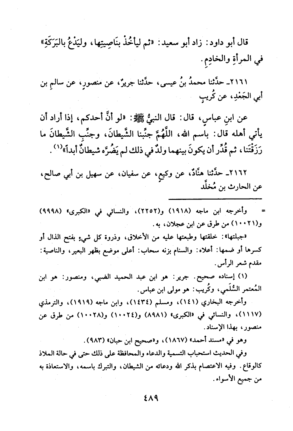 ٢١٦١ - حدَّثنا محمدُ بنُ عيسى، حدَّثنا جريرٌ، عن منصورٍ، عن سالمِ بن أبي الجَعدِ، عن كُريبٍ