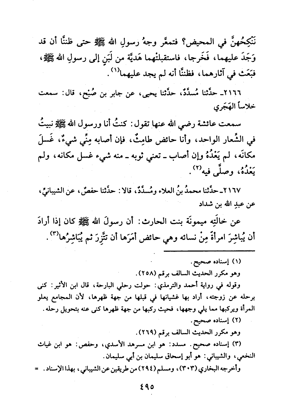 (¬٣) إسناده صحيح. مسدَّدٌ: هو ابن مسرهد الأسدي، وحفص: هو ابن غياث النخعي، والشيباني: هو أبو اسحاق سليمان بن أبي سليمان.