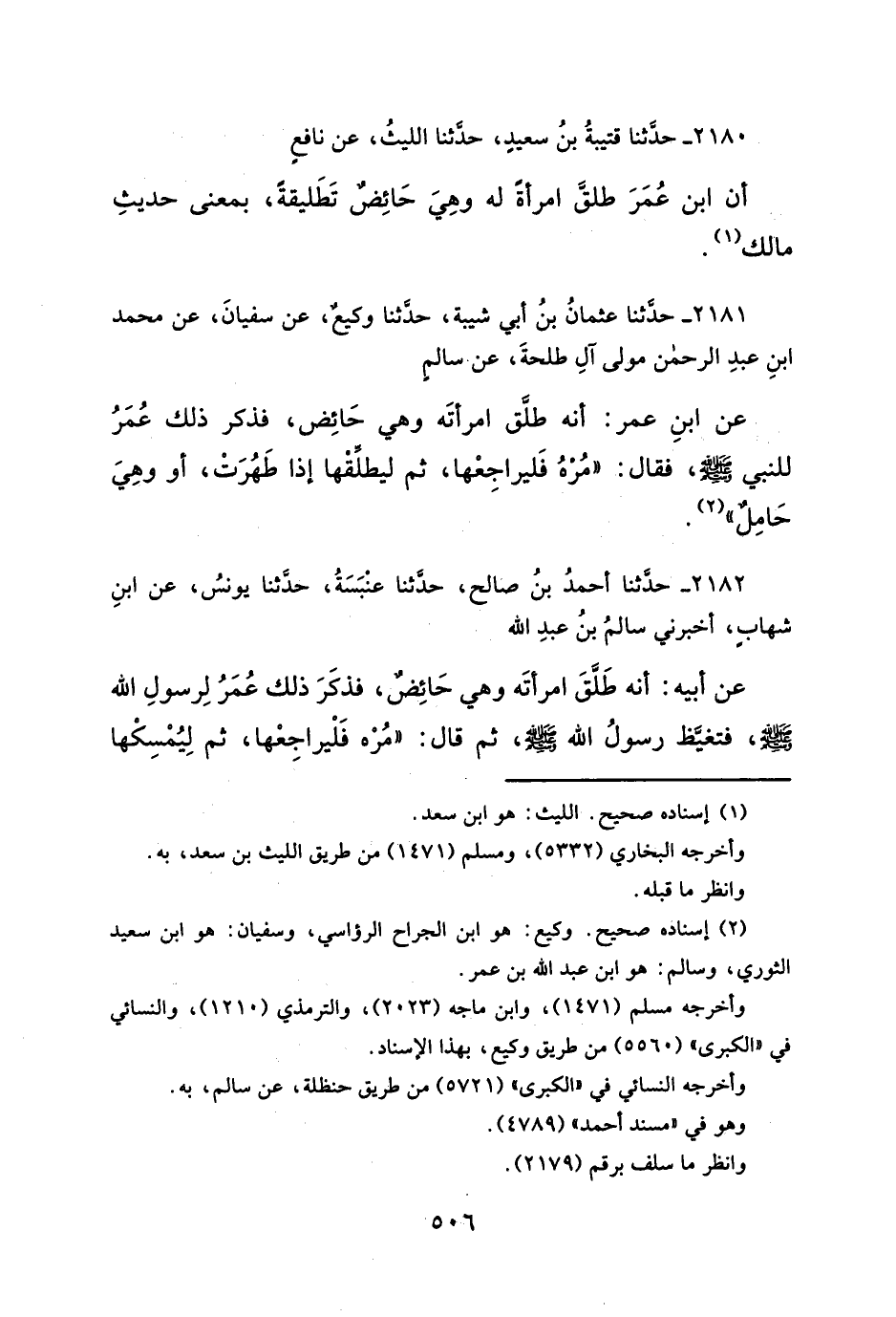 ٢١٨١ - حدَّثنا عثمانُ بنُ أبي شيبة، حدَّثنا وكيعٌ، عن سفيانَ، عن محمد ابنِ عبدِ الرحمن مولى آلِ طلحةَ، عن سالمٍ