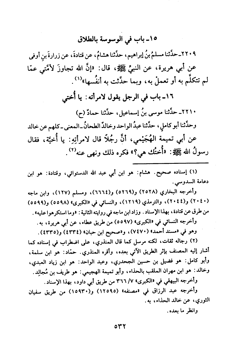 وحدَّثنا أبو كاملٍ، حدَّثنا عبدُ الواحد وخالد الطحانُ - المعنى - كلهم عن خالد عن أبي تميمة الهُجَيمي، أنَّ رجُلاً قال لامرأتِهِ: يا أُخيَّة، فقال رسولُ الله - صلَّى الله عليه وسلم -: "أُختُك هي؟ " فكره ذلك ونهى عنه (¬٢).