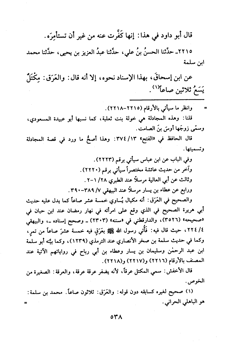 (¬١) صحيح لغيره كسابقه دون قوله: والعَرَق: ثلاثون صاعاً. محمد بن سلمة: هو الباهلي الحراني. =
