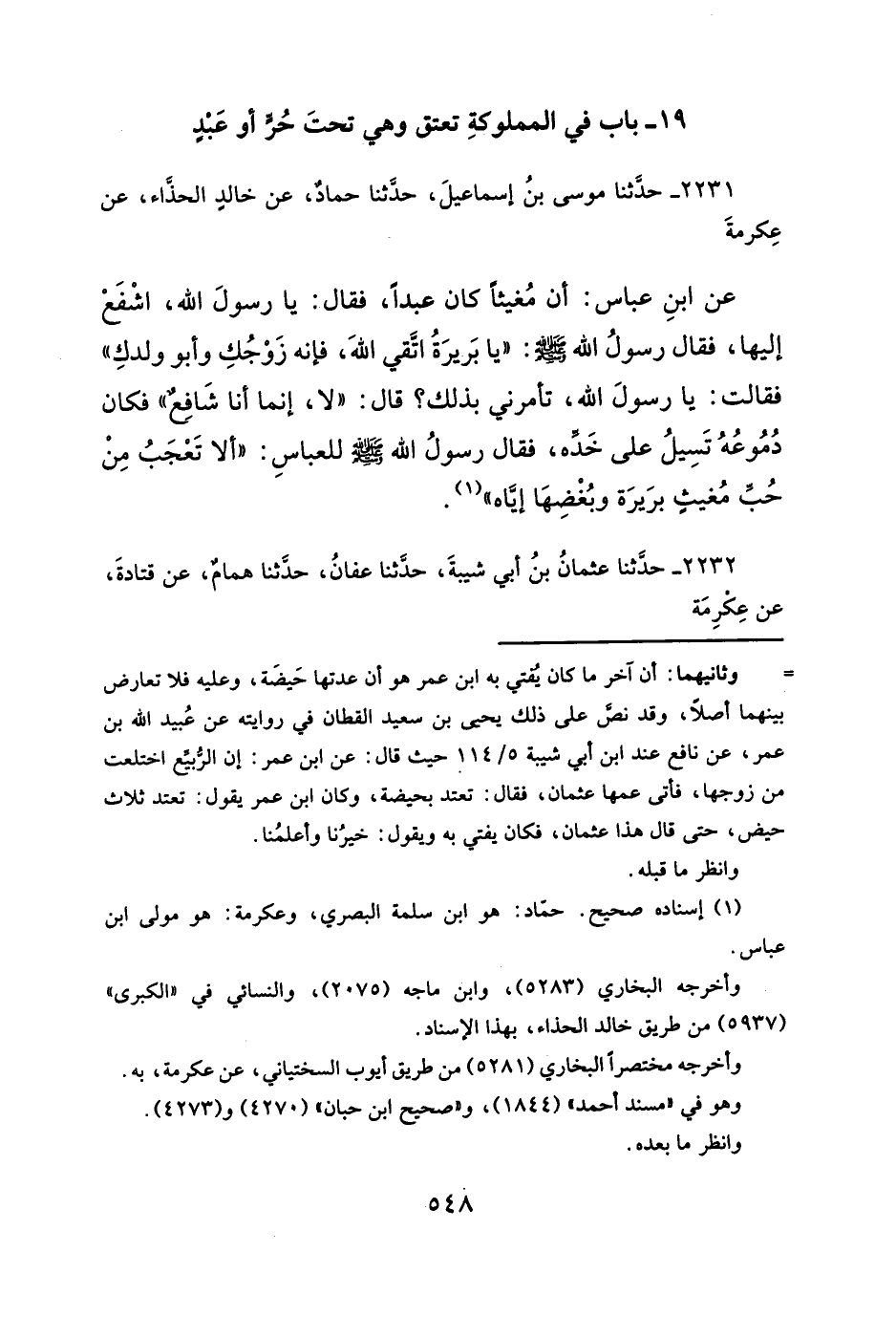 ١٩ - باب في المملوكةِ تعتق وهي تحتَ حُرٍّ أو عَبدٍ