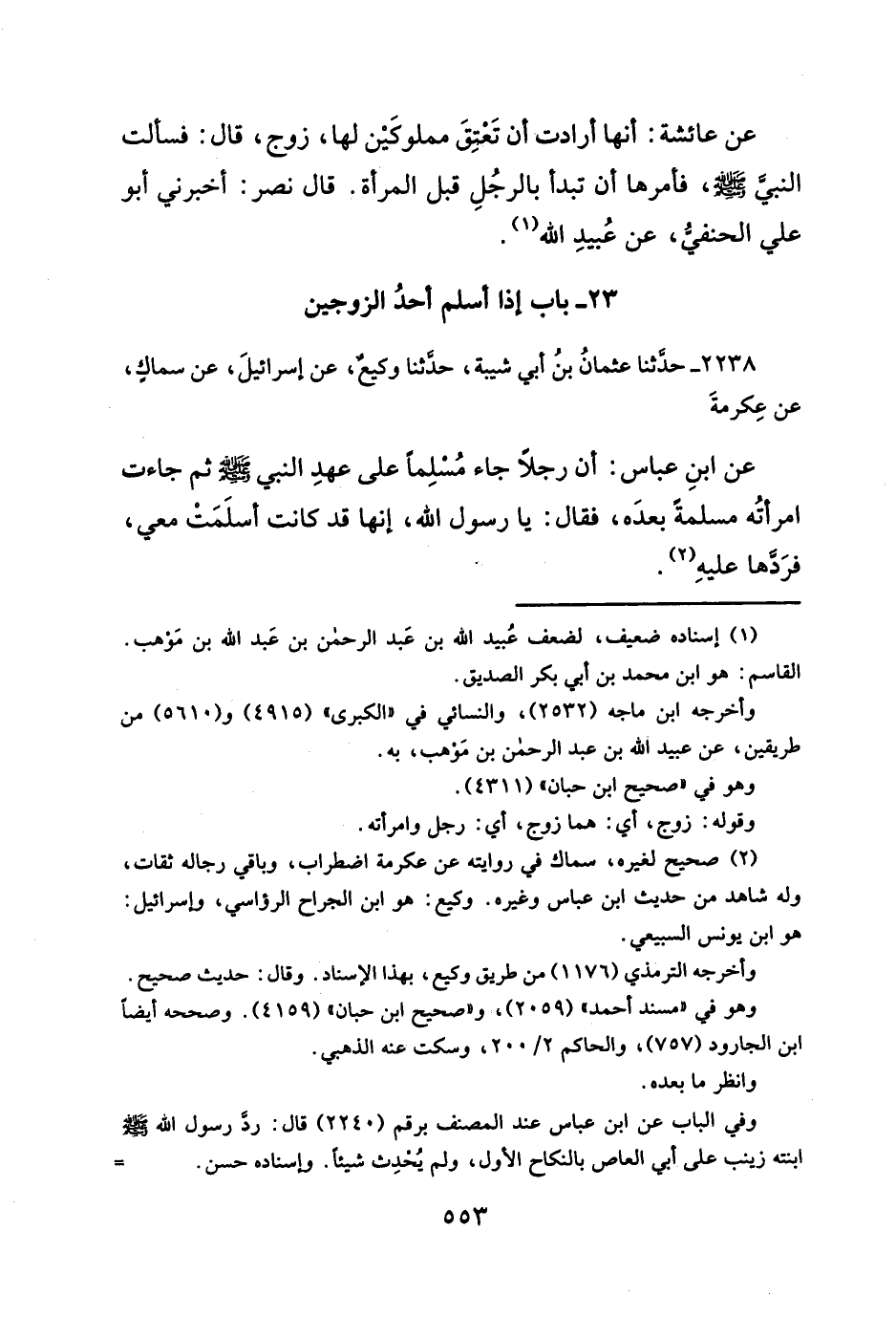 ٢٢٣٨ - حدَّثنا عثمانُ بنُ أبي شيبة، حدَّثنا وكيعٌ، عن إسرائيلَ، عن سماكٍ، عن عِكرمةَ