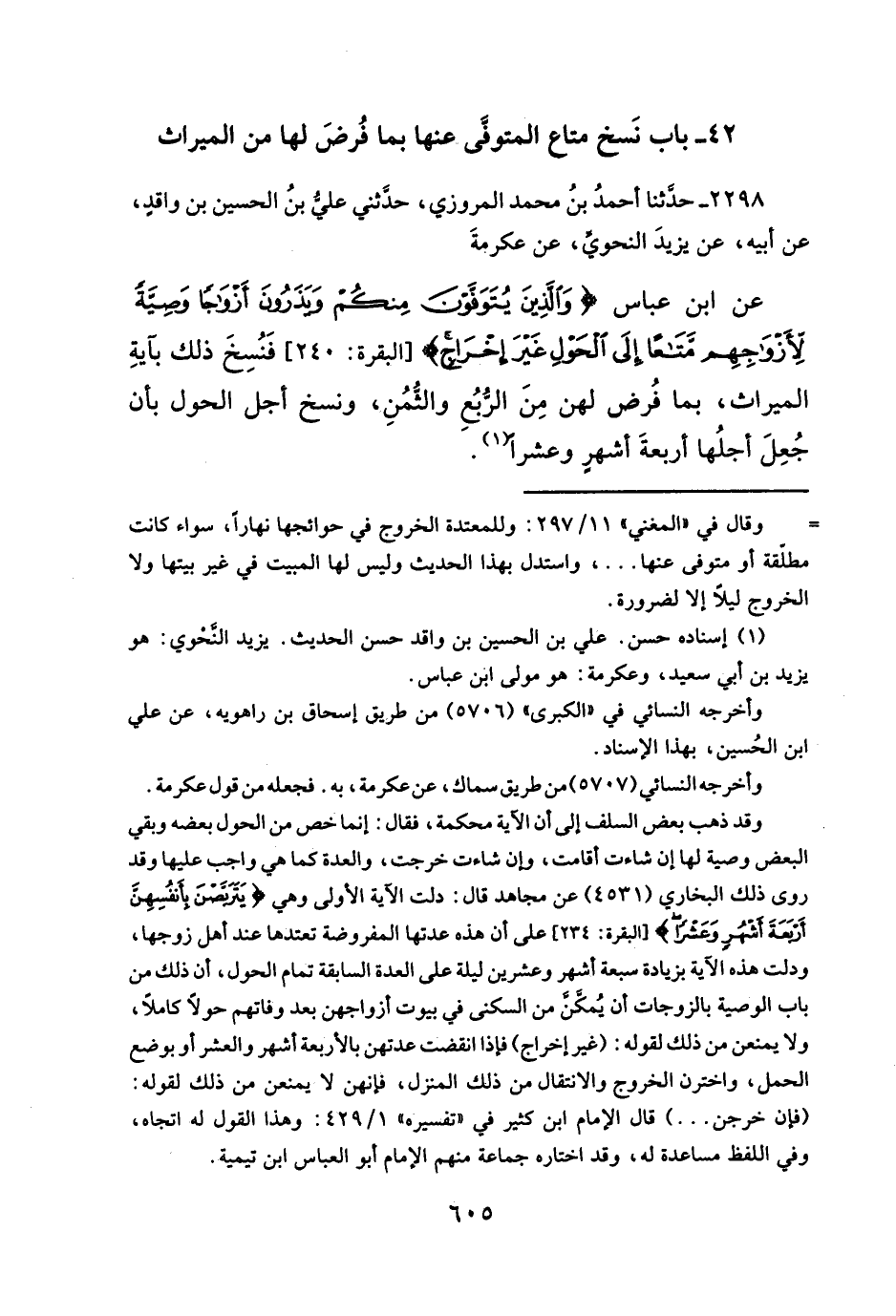 ٤٢ - باب نَسخ متاع المتوفَّى عنها بما فُرضَ لها من الميراث