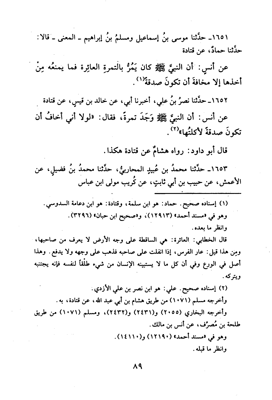 ١٦٥١ - حدَّثنا موسى بنُ إسماعيل ومسلمُ بنُ إبراهيم - المعنى - قالا: حدَّثنا حماد، عن قتادة