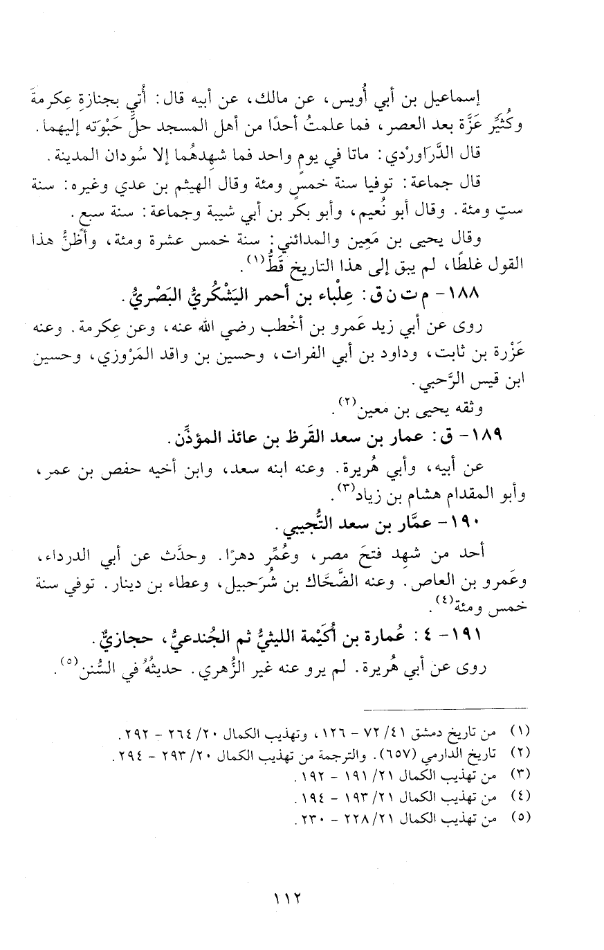 191 - 4: عُمارة بْنُ أُكَيْمة الليثيُّ ثم الْجُندعيُّ، [الوفاة: 101 - 110 ه]