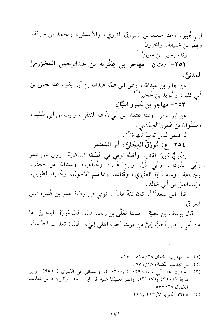 252 - د ت ن: مُهَاجِرُ بْنُ عِكْرِمَةَ بْنِ عَبْدِ الرَّحْمَنِ الْمَخْزُومِيُّ الْمَدَنِيُّ. [الوفاة: 101 - 110 ه]