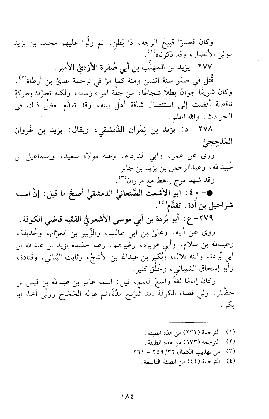 • - م 4: أَبُو الأَشْعَثِ الصَّنْعَانِيُّ الدِّمَشْقِيُّ أَصَحُّ مَا قِيلَ إِنَّ اسْمَهُ شَرَاحِيلُ بْنُ آدَةَ. [الوفاة: 101 - 110 ه]