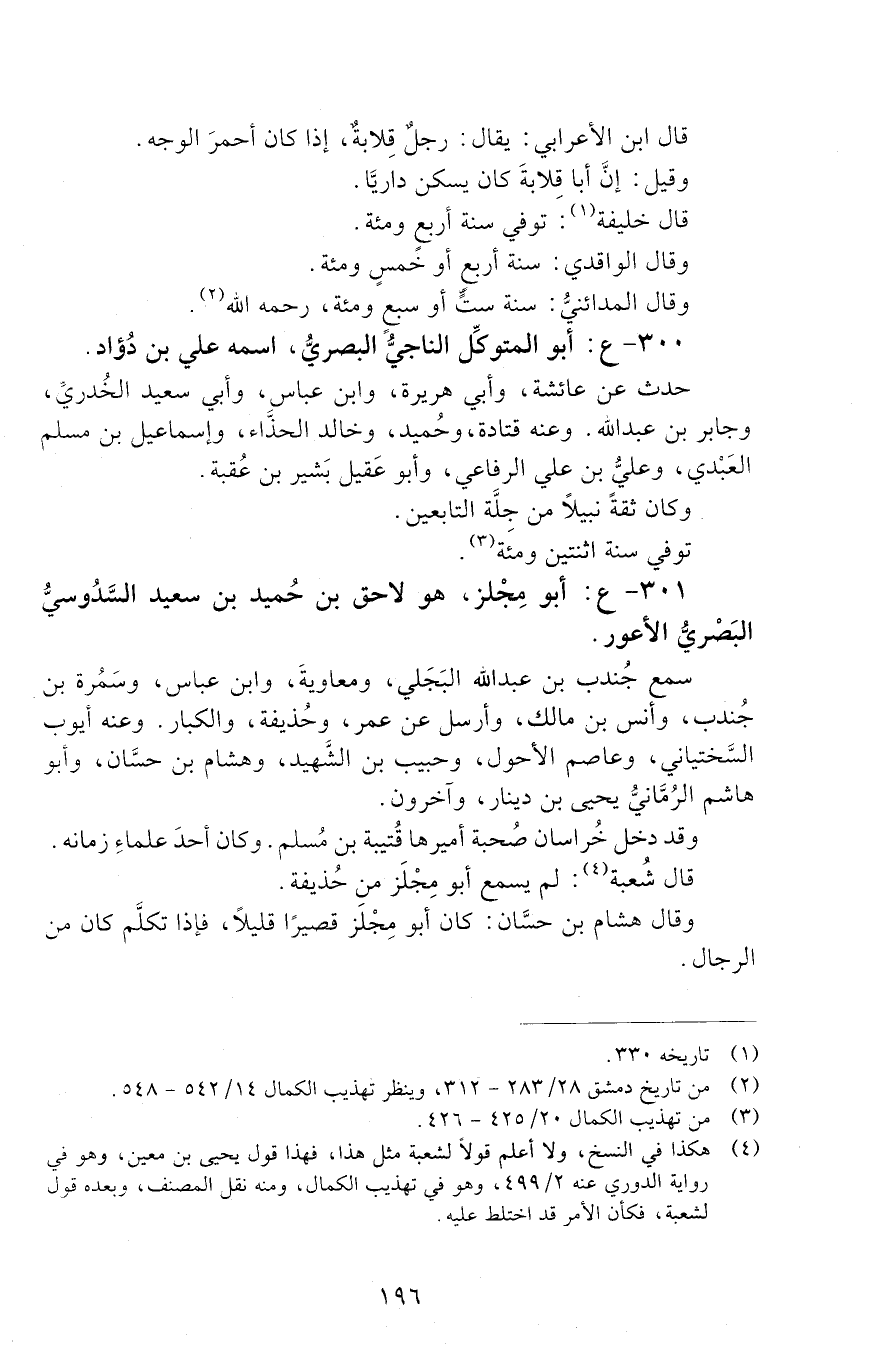 300 - ع: أَبُو الْمُتَوَكِّلِ النَّاجِيُّ الْبَصْرِيُّ، اسْمُهُ عَلِيُّ بْنُ دُؤَادٍ. [الوفاة: 101 - 110 ه]