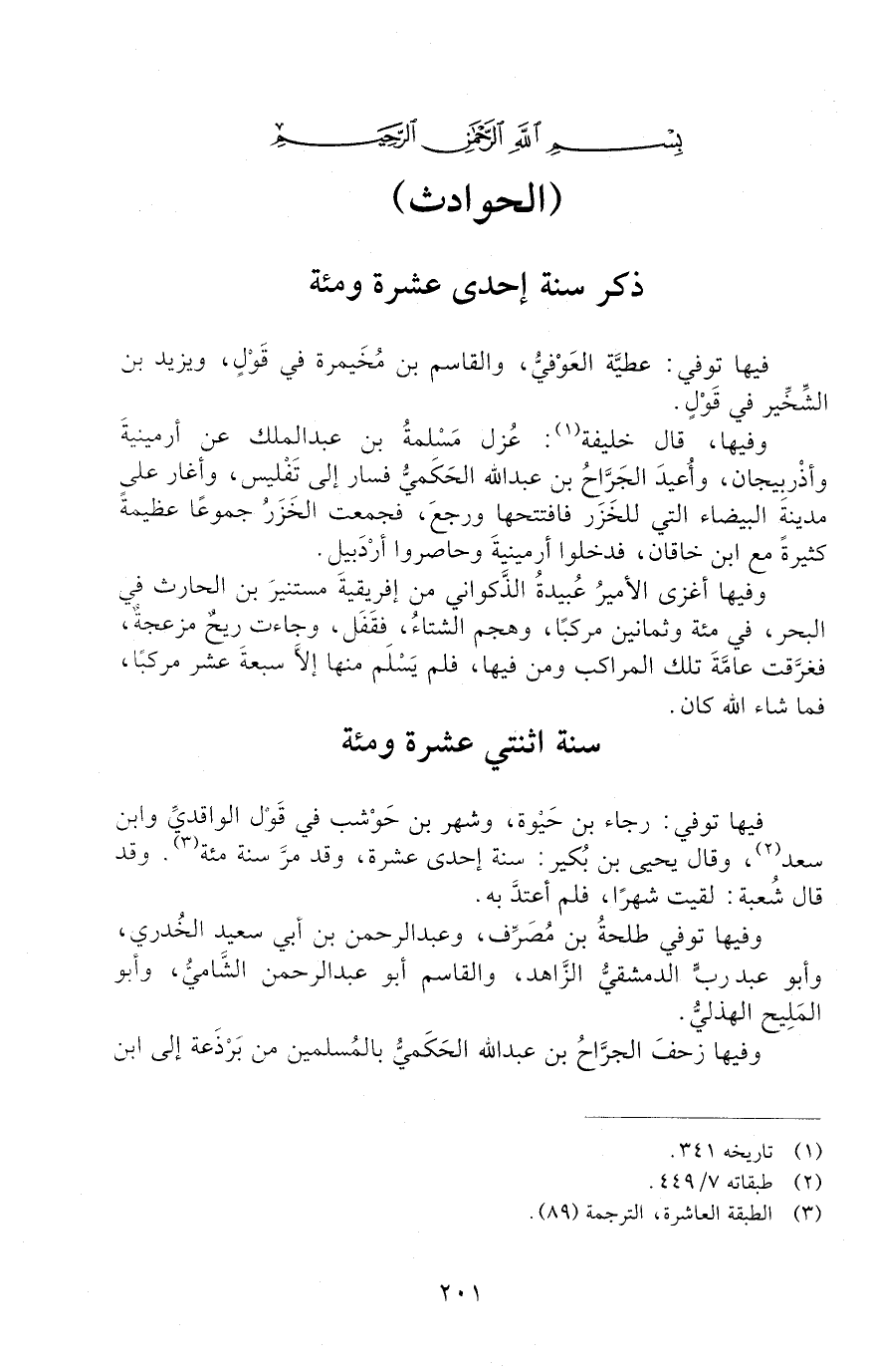 -ذِكْرُ سَنَةِ إِحْدَى عَشْرَةَ وَمِائَةٍ