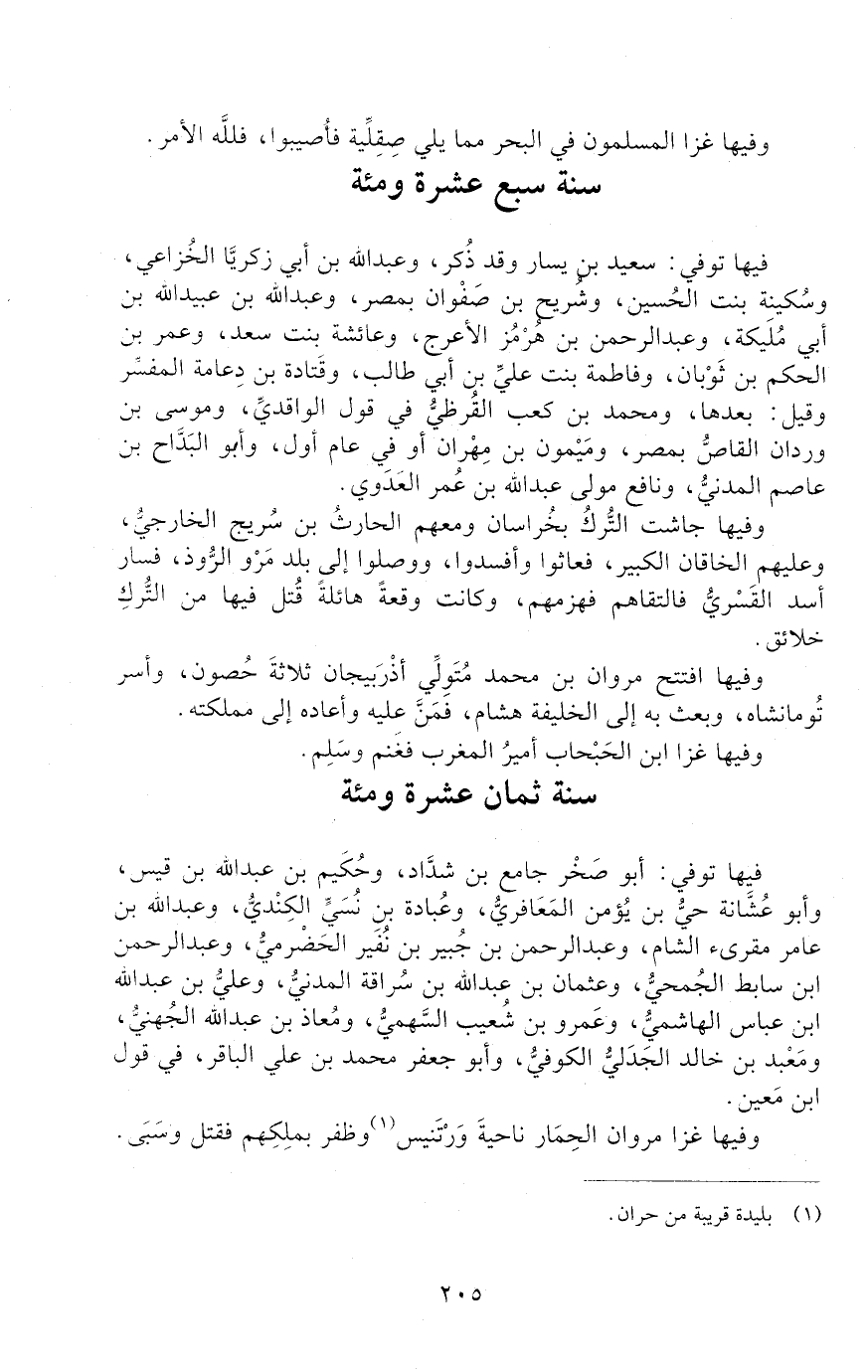 وَفِيهَا غَزَا مَرْوَانُ الْحِمَارُ نَاحِيَةَ وَرْتَنِيسَ، وَظَفَرَ بِمَلِكِهِمْ فَقَتَلَ وسبى. -[206]-