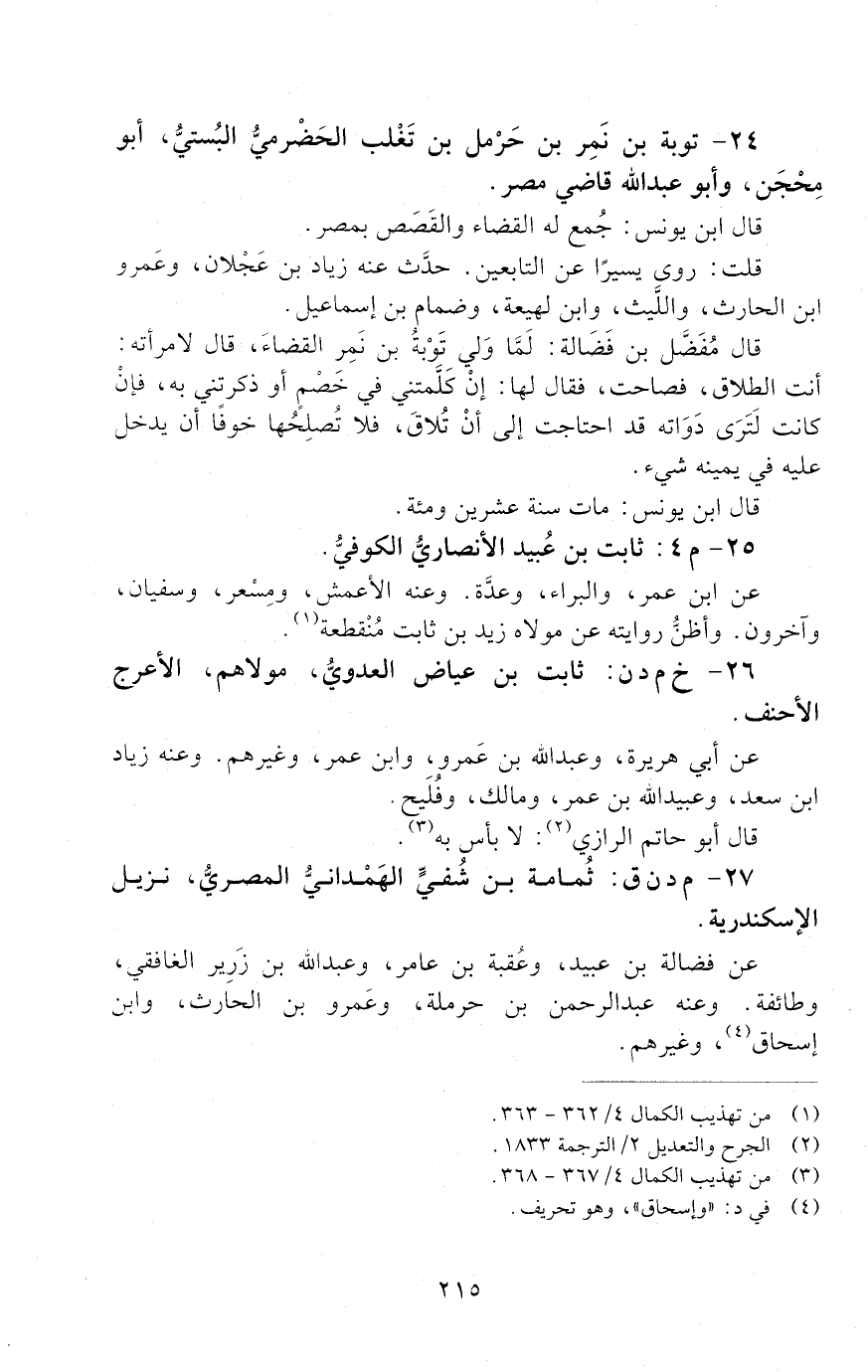 27 - م د ن ق: ثُمَامَةُ بْنُ شُفَيٍّ الْهَمْدَانِيُّ الْمَصْرِيُّ، [الوفاة: 111 - 120 ه]