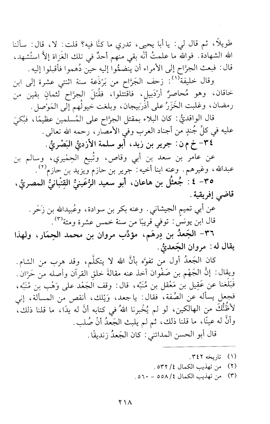 36 - الْجَعْدُ بْنُ دِرْهَمٍ، مُؤَدِّبُ مَرْوَانَ بْنِ مُحَمَّدٍ الْحِمَارِ، وَلِهَذَا يُقَالُ لَهُ: مَرْوَانُ الْجَعْدِيُّ. [الوفاة: 111 - 120 ه]