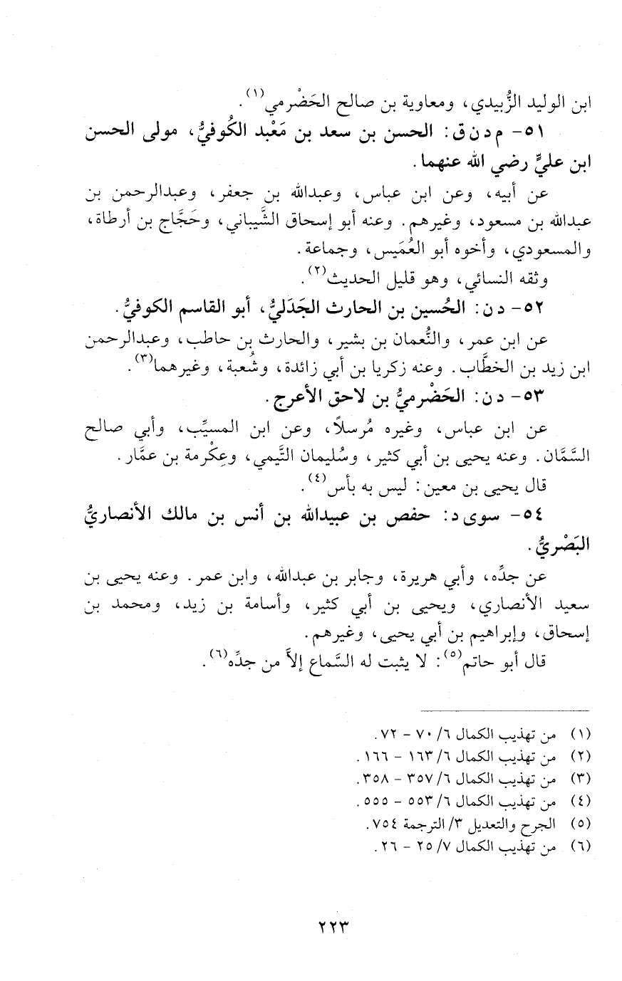 53 - د ن: الْحَضْرَمِيُّ بْنُ لاحِقٍ الأَعْرَجُ. [الوفاة: 111 - 120 ه]