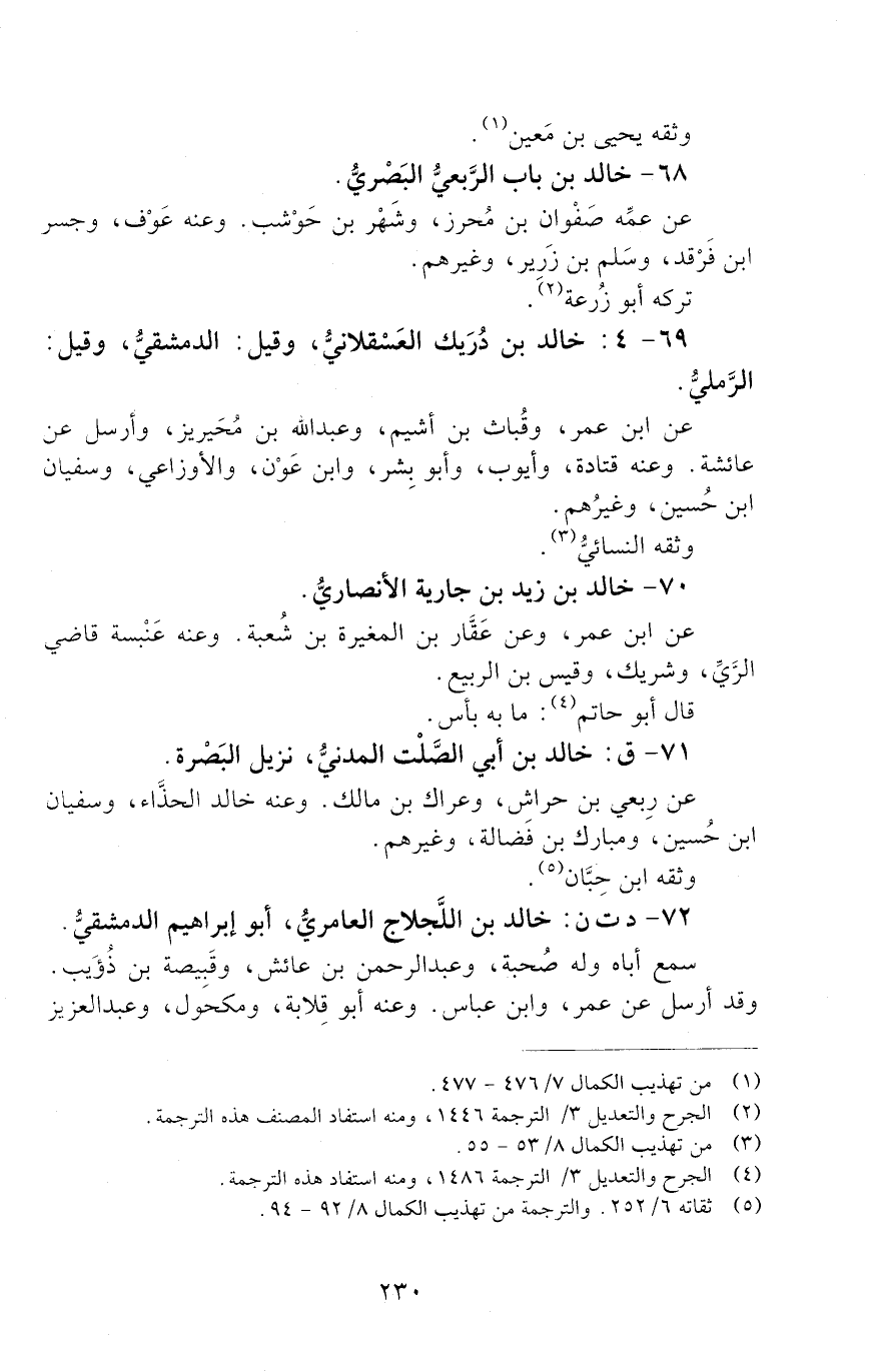 69 - 4: خَالِدُ بْنُ دُرَيْكٍ الْعَسْقَلانِيُّ، وَقِيلَ: الدِّمَشْقِيُّ، وَقِيلَ: الرَّمْلِيُّ. [الوفاة: 111 - 120 ه]