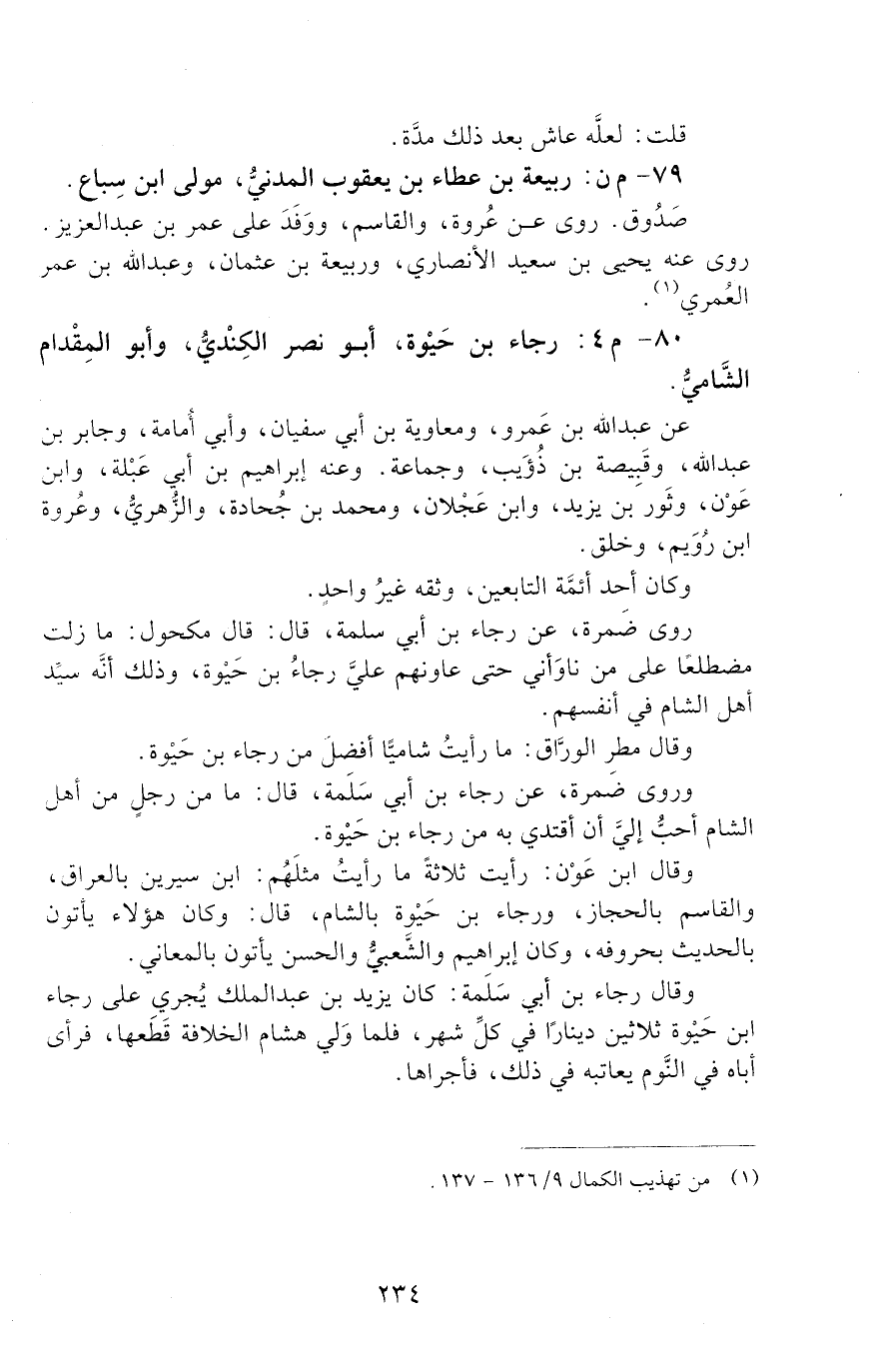 80 - م 4: رَجَاءُ بْنُ حَيْوَةَ، أَبُو نَصْرٍ الْكِنْدِيُّ، وَأَبُو الْمِقْدَامِ الشَّامِيُّ. [الوفاة: 111 - 120 ه]
