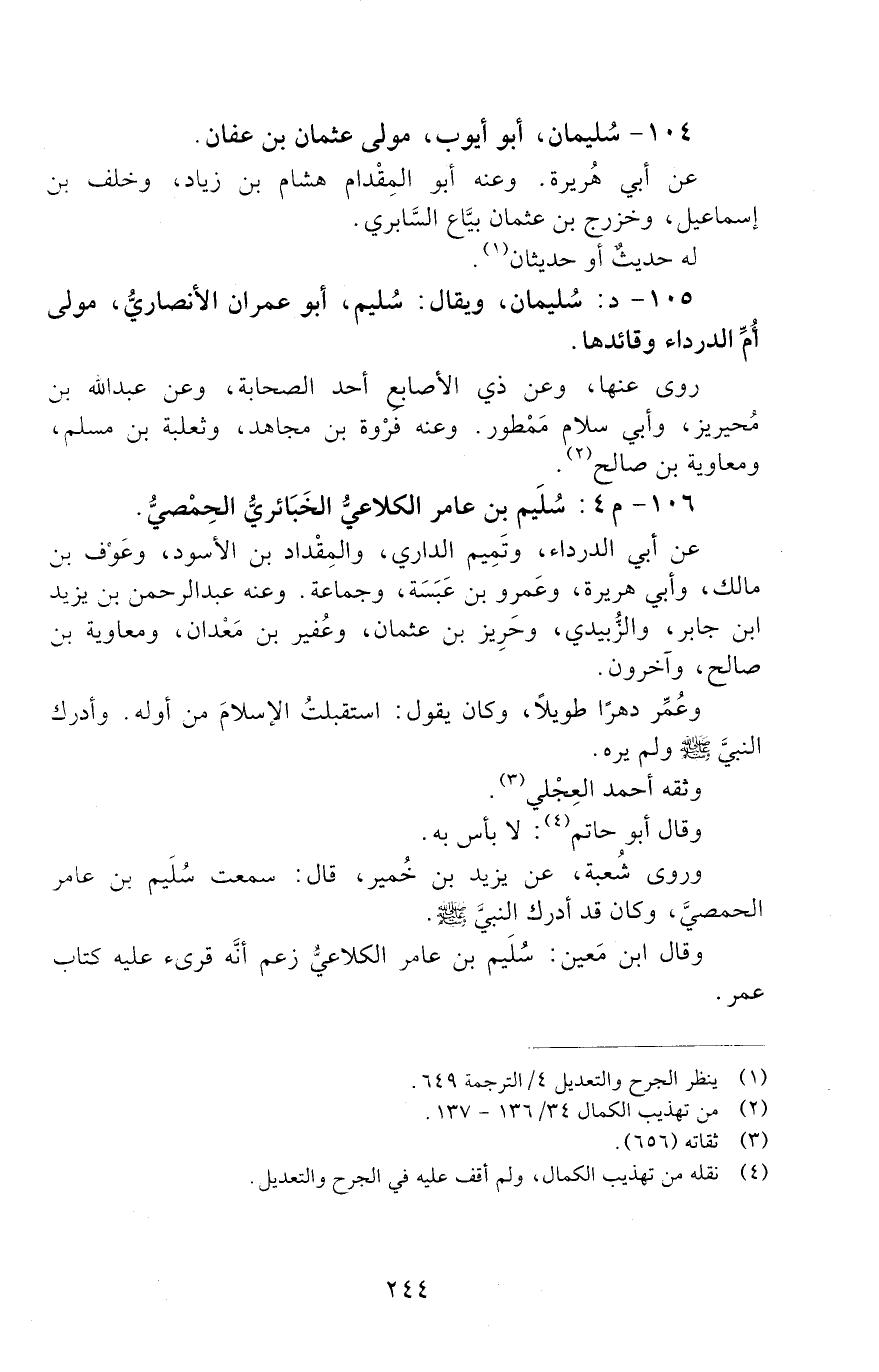 106 - م 4: سُلَيْمُ بْنُ عَامِرٍ الْكَلاعِيُّ الْخَبَائِرِيُّ الْحِمْصِيُّ. [الوفاة: 111 - 120 ه]