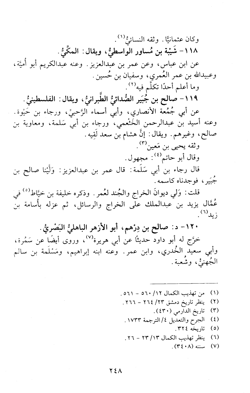119 - صالح بْن جُبَيْر الصُّدائي الطَّبَراني، ويُقال: الفلسطينيُّ. [الوفاة: 111 - 120 ه]