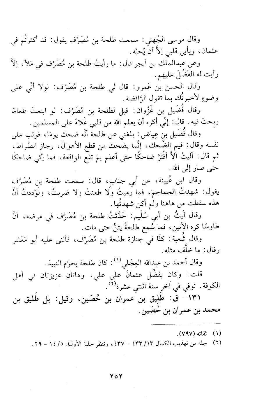 131 - ق: طُلَيْق بْن عِمران بْن حُصَيْن، وقيل: بل طُلَيْق بْن مُحَمَّد بْن عِمران بْن حُصَيْن. [الوفاة: 111 - 120 ه]