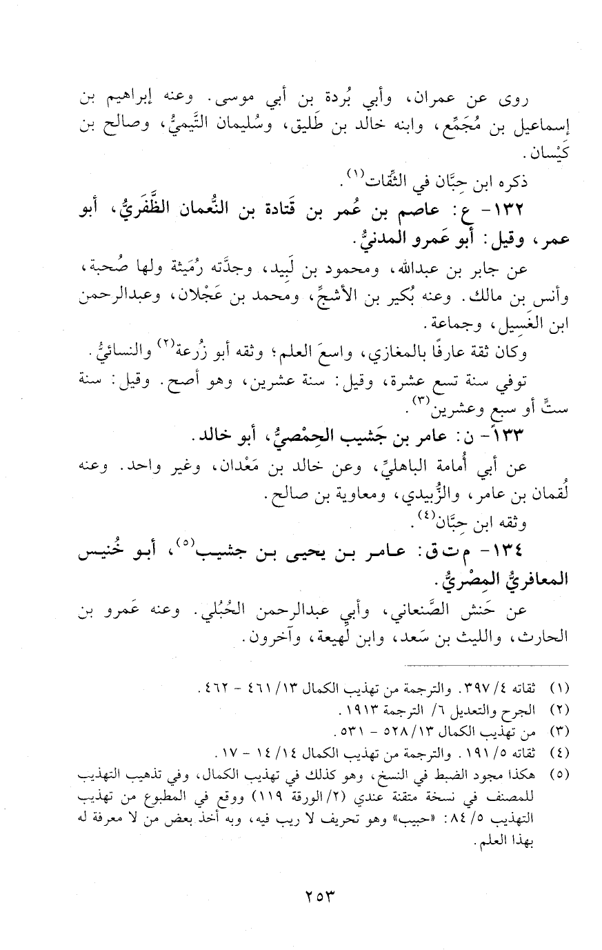 133 - ن: عامر بْن جَشِيب الحمصي، أَبُو خَالِد. [الوفاة: 111 - 120 ه]