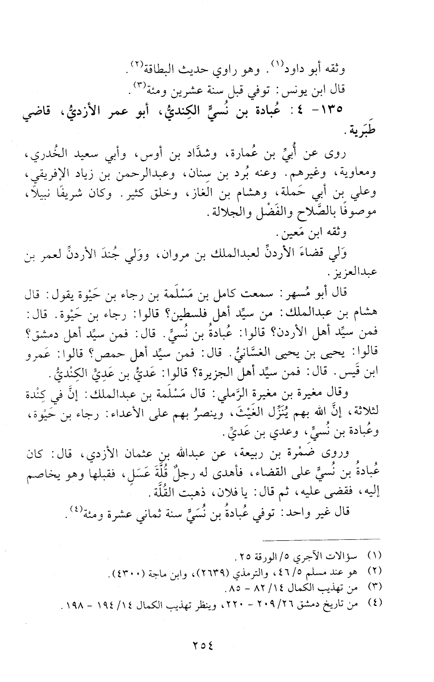 135 - 4: عُبَادة بْن نُسَيّ الْكِنْدِيُّ، أَبُو عُمَر الأَزْدِيّ، [الوفاة: 111 - 120 ه]
