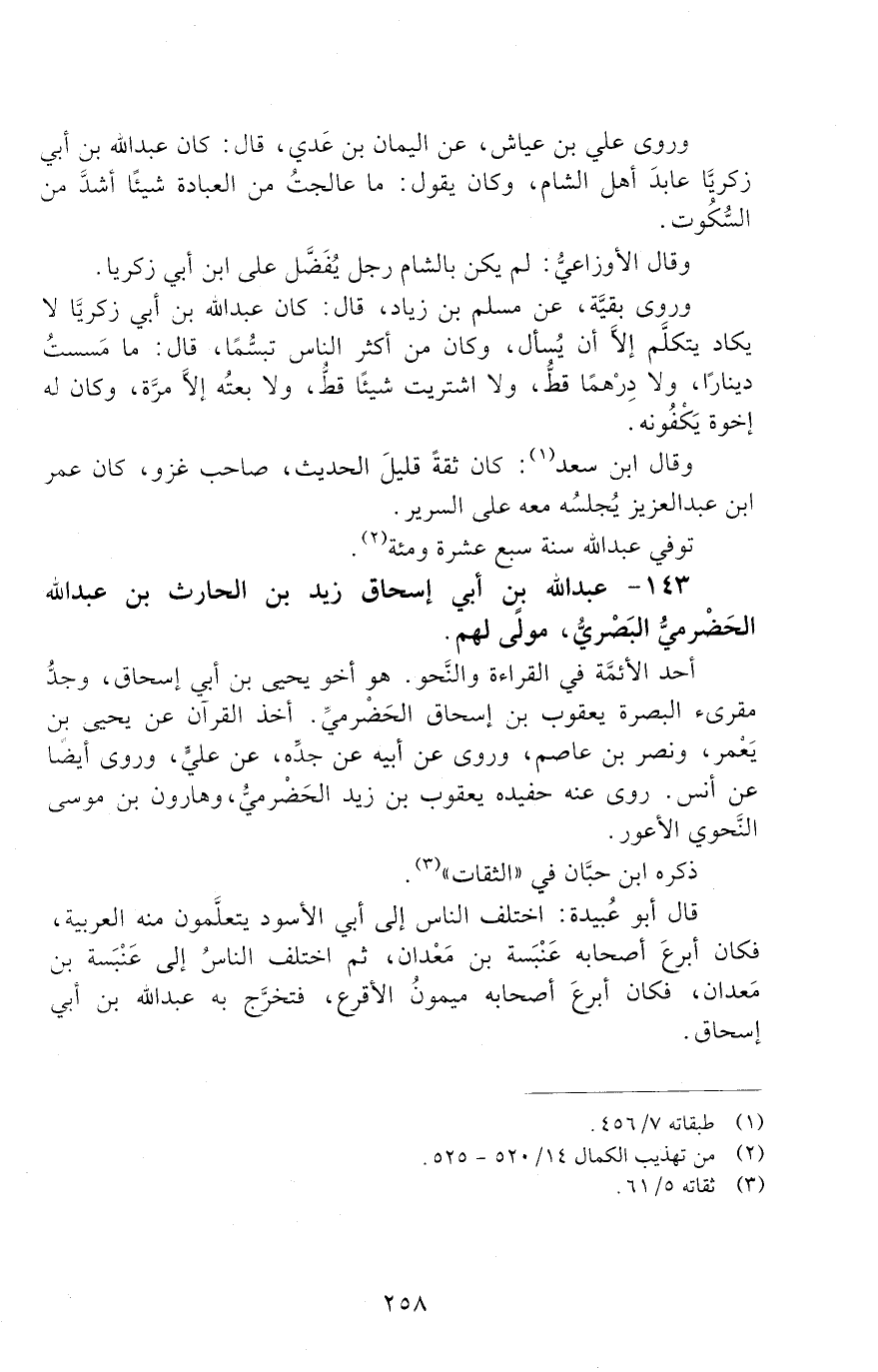 143 - عَبْد اللَّه بْن أَبِي إسحاق زيد بْن الحارث بْن عَبْد اللَّه الحضْرَمِيّ الْبَصْرِيّ، [الوفاة: 111 - 120 ه]
