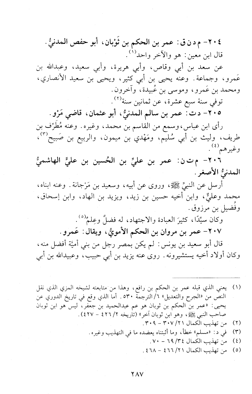206 - م ت ن: عُمَر بْن عليِّ بْن الحُسَين بْن عليّ الهاشميُّ الْمَدَنِيُّ الأصغر [الوفاة: 111 - 120 ه]