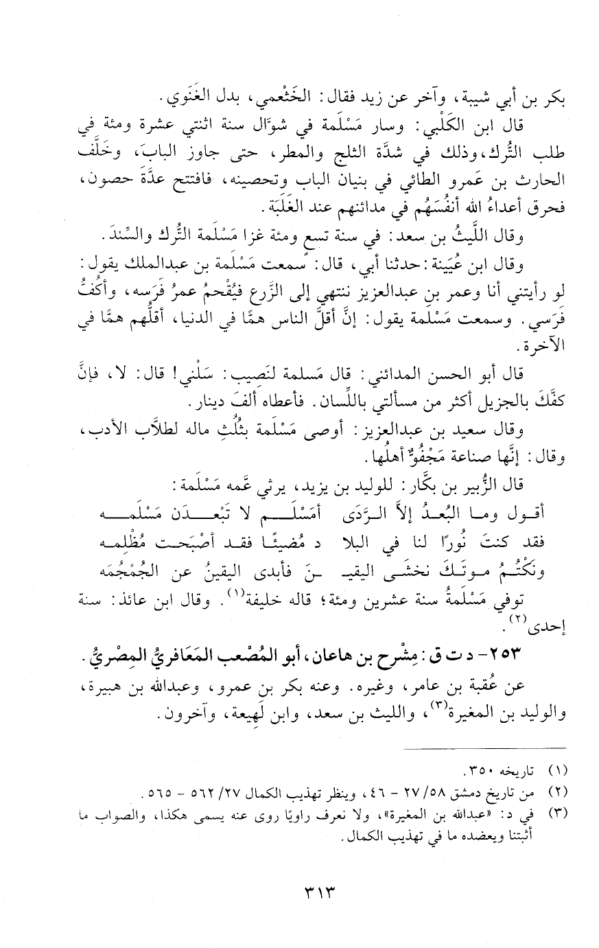 253 - د ت ق: مِشْرَح بْن هاعان أبو مصعب الْمَعَافِرِيُّ الْمِصْريُّ [الوفاة: 111 - 120 ه]