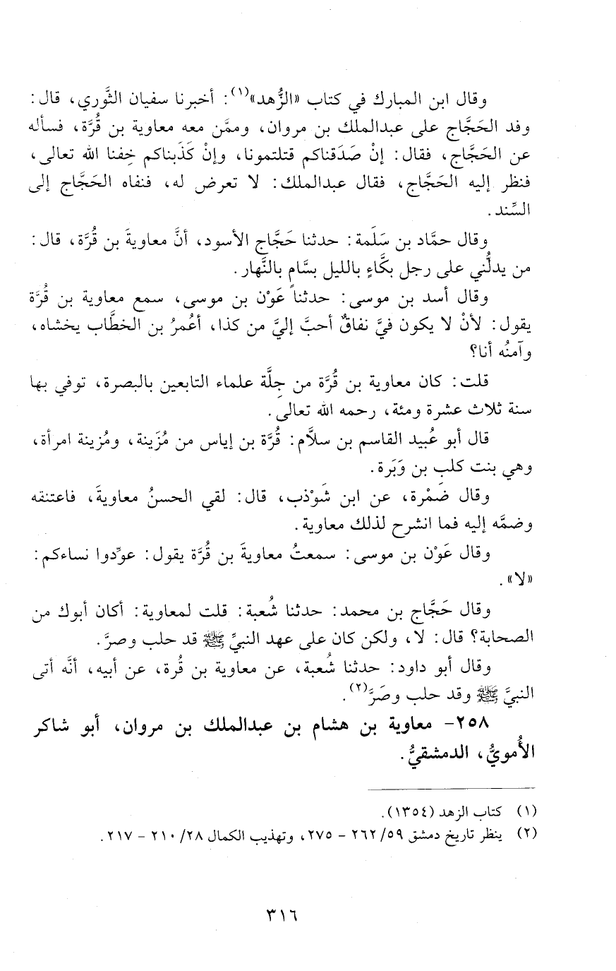 258 - معاوية بْن هشام بْن عَبْد الملك بْن مروان، أَبُو شاكر الأُمويُّ، الدمشقي. [الوفاة: 111 - 120 ه]