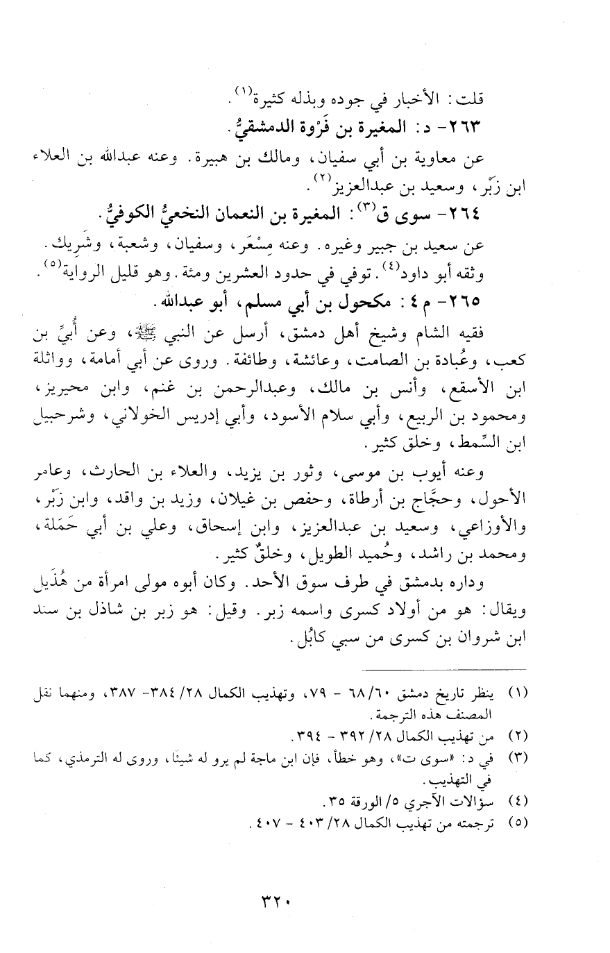 265 - م 4: مكحول بْن أَبِي مُسْلِم، أَبُو عَبْد اللَّه [الوفاة: 111 - 120 ه]