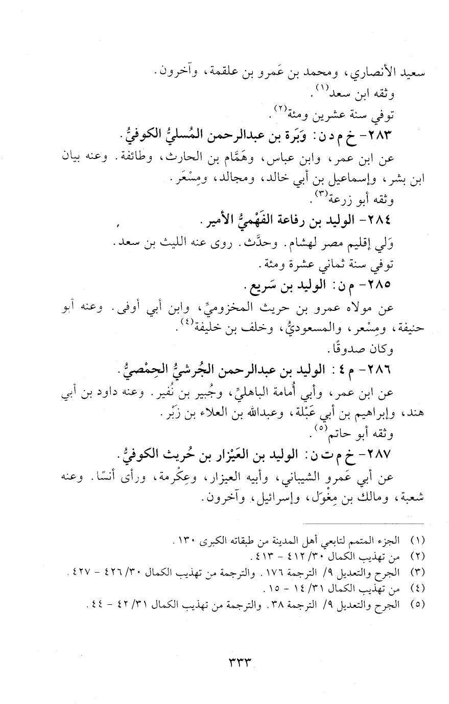 286 - م 4: الوليد بْن عَبْد الرَّحْمَن الْجُرَشي الحِمْصيُّ. [الوفاة: 111 - 120 ه]
