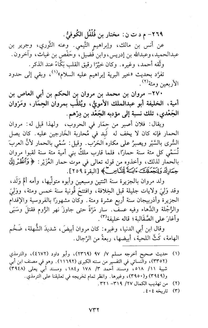 270 - مَرْوَانُ بْنُ مُحَمَّدِ بْنُ مَرْوَانَ بْنِ الْحَكَمِ بْنِ أَبِي الْعَاصِ بْنِ أُمَيَّةَ، الْخَلِيفَةُ أَبُو عَبْدِ الْمَلِكِ الأُمَوِيُّ، وَيُلَقَّبُ بِمَرْوَانَ الْحِمَارِ، وَمَرْوَانَ الْجَعْدِيِّ، َ [الوفاة: 131 - 140 ه]