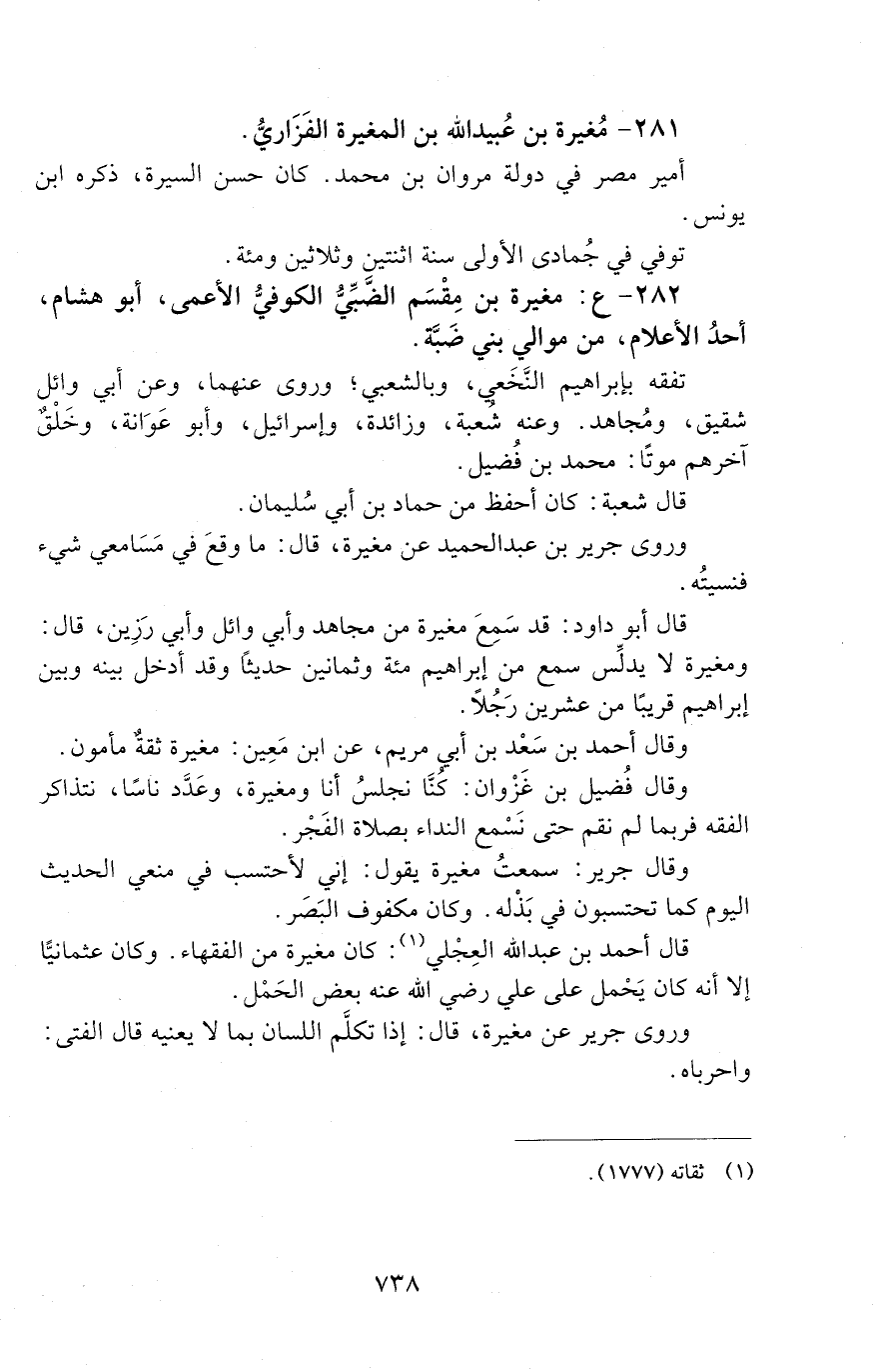 282 - ع: مُغِيرَةُ بْنُ مِقْسَمٍ الضَّبِّيُّ الْكُوفِيُّ الأَعْمَى، أَبُو هِشَامٍ. [الوفاة: 131 - 140 ه]
