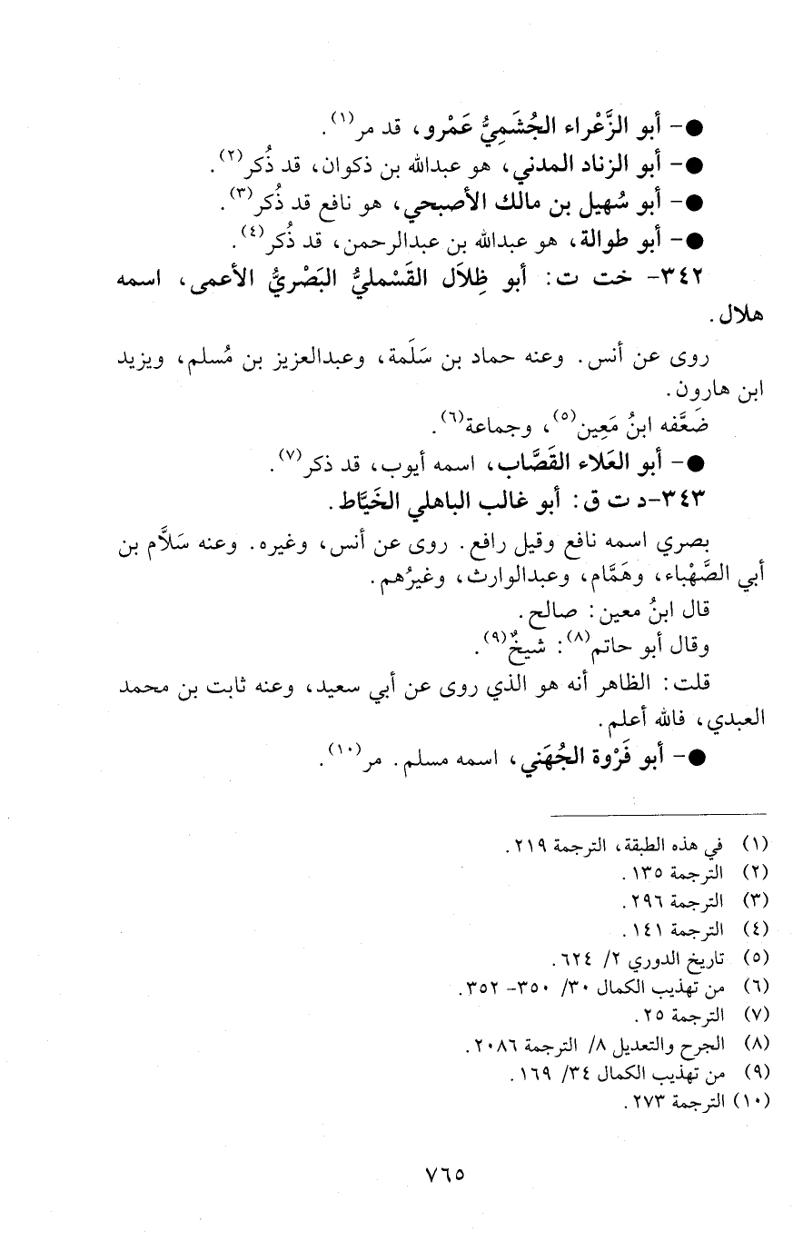 342 - خت ت: أَبُو ظلال القَسْمليُّ الْبَصْرِيُّ الأعمى، اسمه هلال [الوفاة: 131 - 140 ه]