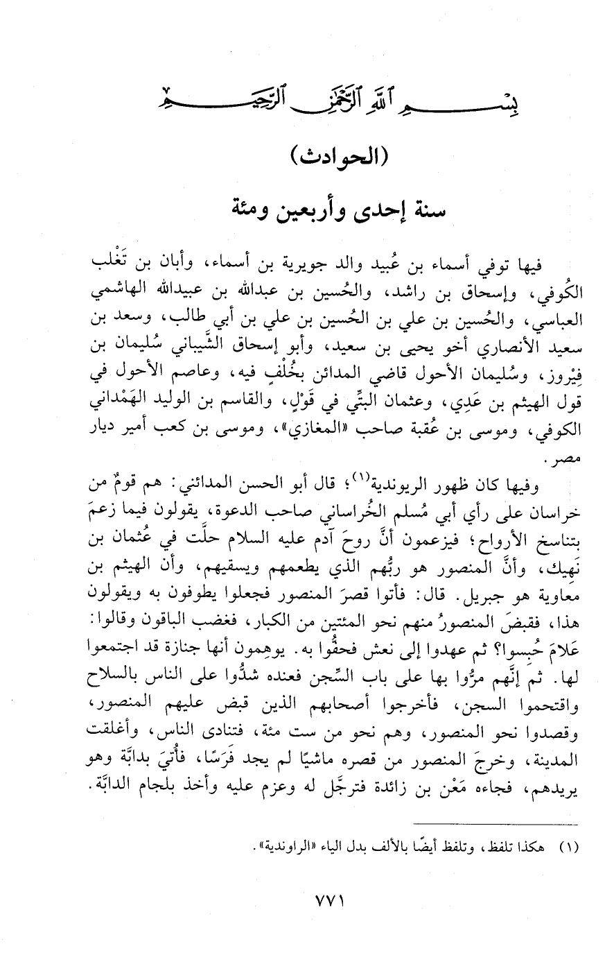 -سَنَةَ إِحْدَى وَأَرْبَعِينَ وَمِائَةٍ.