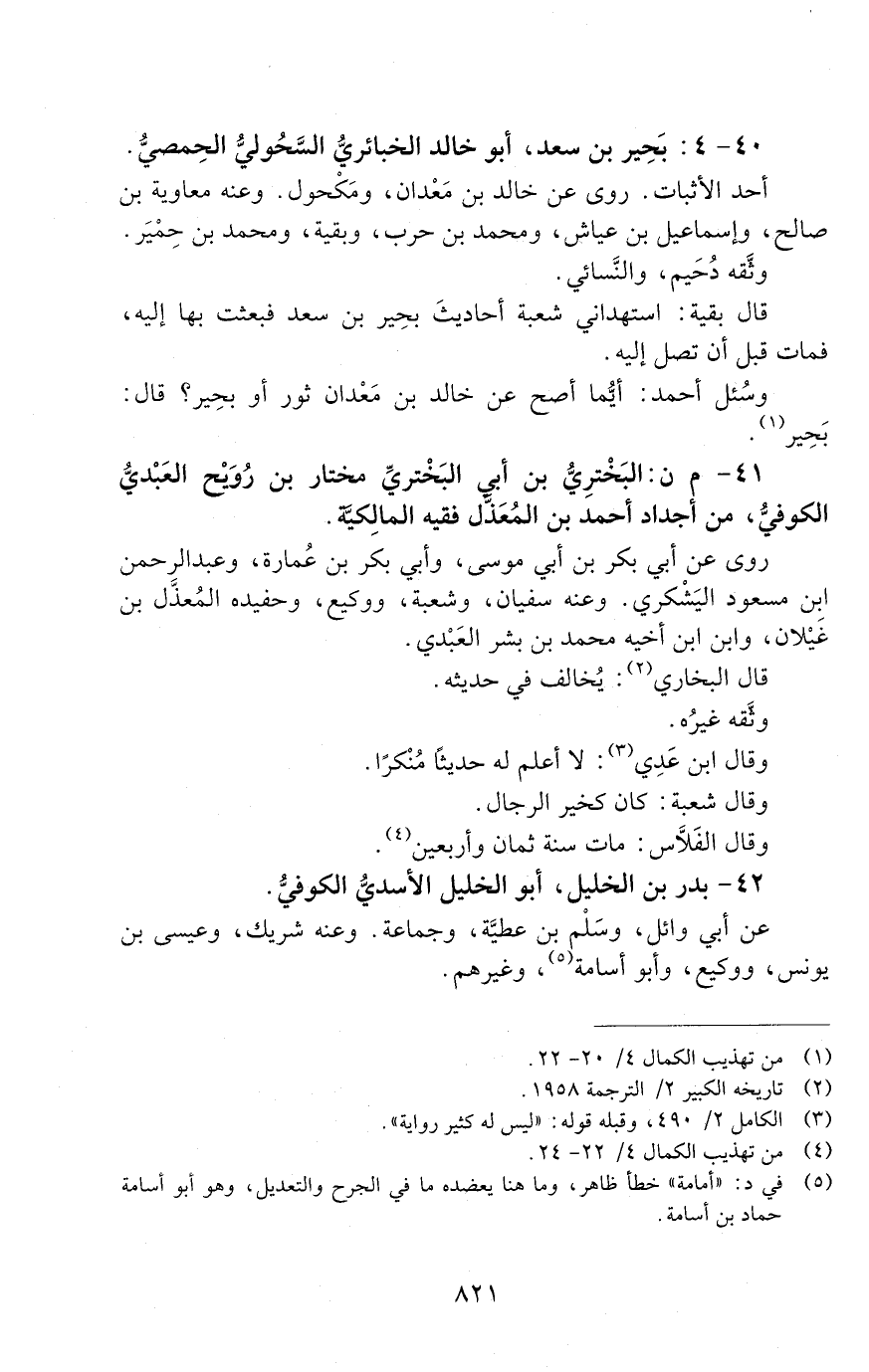 40 - 4: بَحِيرُ بْنُ سَعْدٍ أَبُو خَالِدٍ الْخَبَائِرِيُّ السَّحُولِيُّ الْحِمْصِيُّ. [الوفاة: 141 - 150 ه]