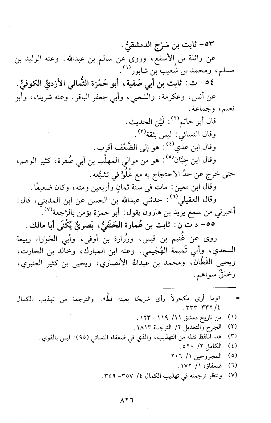54 - ت: ثَابِتُ بْنُ أَبِي صَفِيَّةَ أَبُو حَمْزَةَ الثُّمَالِيّ الأَزْدِيُّ الْكُوفِيُّ. [الوفاة: 141 - 150 ه]