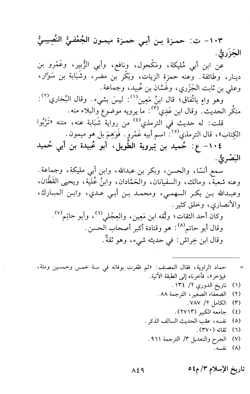 104 - ع: حُمَيْدُ بْنُ تِيرَوَيْهِ الطَّوِيلِ، أَبُو عُبَيْدَةَ بْنُ أَبِي حُمَيْدٍ الْبَصْرِيُّ. [الوفاة: 141 - 150 ه]