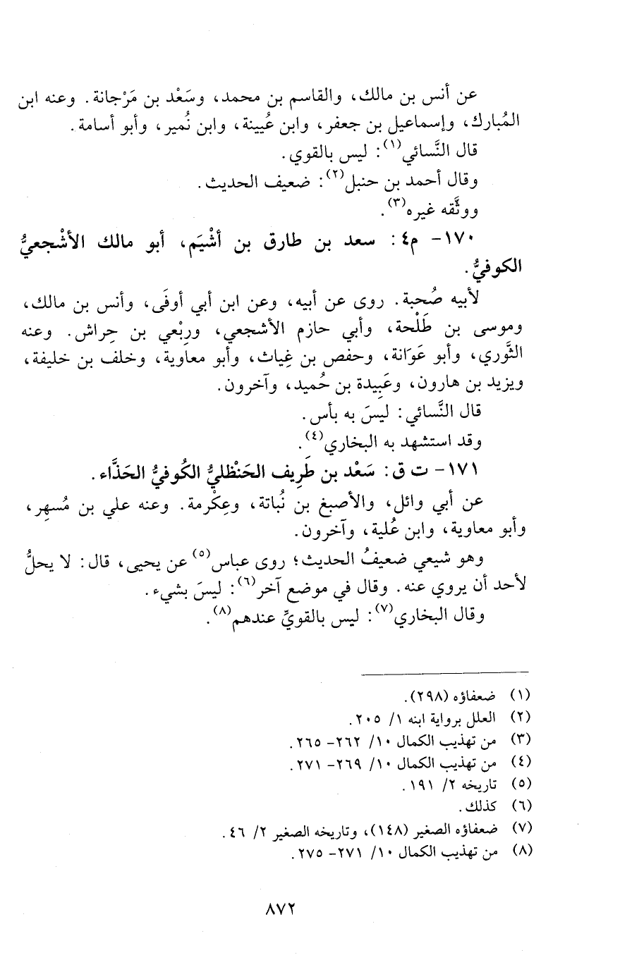 170 - م 4: سَعْدُ بْنُ طَارِقِ بْنِ أَشْيَمَ، أَبُو مَالِكٍ الأَشْجَعِيُّ الْكُوفِيُّ. [الوفاة: 141 - 150 ه]