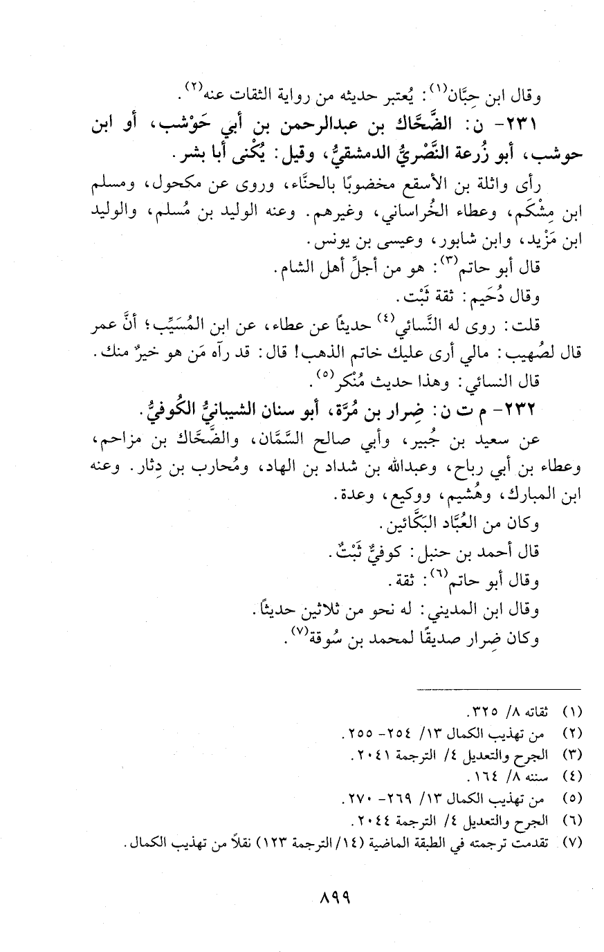 231 - ن: الضَّحَّاكُ بْنُ عَبْدِ الرَّحْمَنِ بْن أَبِي حَوْشَبٍ، أَوِ ابْنِ حَوْشَبٍ، أَبُو زُرْعَةَ النَّصْرِيُّ الدِّمَشْقِيُّ، وَقِيلَ: يُكْنَى أَبَا بِشْرٍ. [الوفاة: 141 - 150 ه]