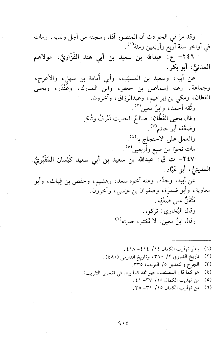 247 - ت ق: عَبْدُ اللَّهِ بْنُ سَعِيدِ بْنِ أَبِي سَعِيدٍ كَيْسَانَ الْمَقْبُرِيُّ الْمَدِينِيُّ، أَبُو عَبَّادٍ. [الوفاة: 141 - 150 ه]