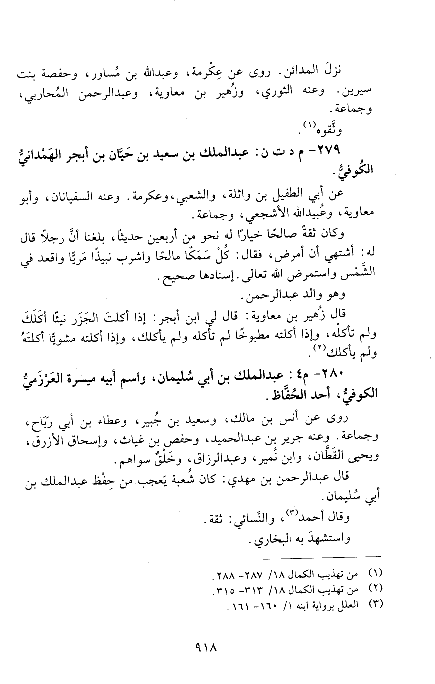 280 - م 4: عَبْدُ الْمَلِكِ بْنُ أَبِي سُلَيْمَانَ، واسم أبيه ميسرة العرزومي الْكُوفِيُّ، [الوفاة: 141 - 150 ه]