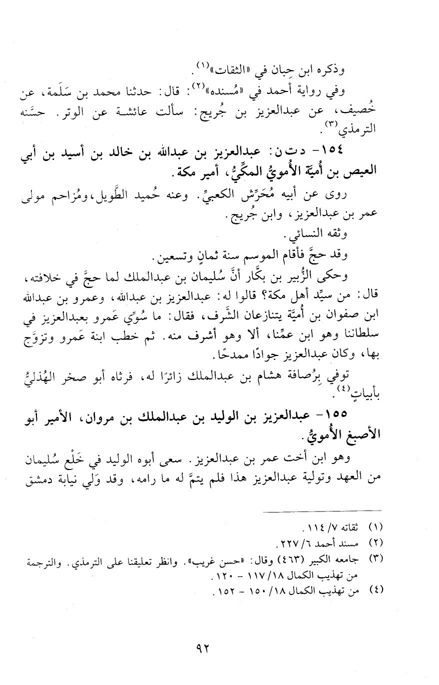 154 - د ت ن: عَبْدِ الْعَزِيزِ بْنِ عَبْدِ اللَّهِ بْنِ خَالِدِ بْنِ أُسَيْدِ بْنِ أَبِي الْعِيصِ بْنِ أُمَيَّةَ الأُمَوِيُّ الْمَكِّيُّ [الوفاة: 101 - 110 ه]