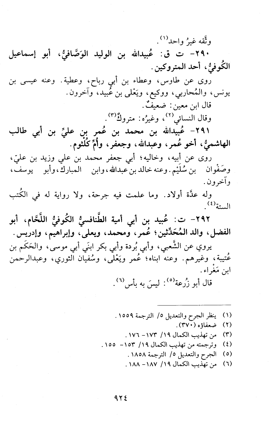 290 - ت ق: عُبيد الله بن الوليد الوَصَّافيُّ، أَبُو إِسْمَاعِيلَ الْكُوفِيُّ، [الوفاة: 141 - 150 ه]