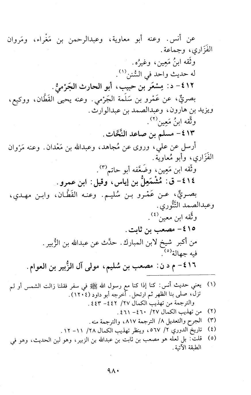 416 - م د ن: مُصْعَبُ بْنُ سُلَيْمٍ، [الوفاة: 141 - 150 ه]