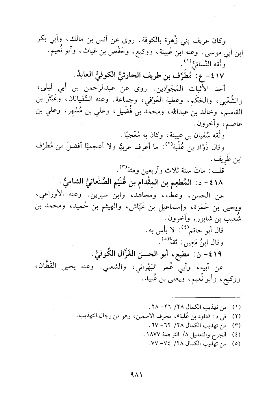 417 - ع: مُطَرِّفُ بْنُ طريف الْحَارِثِيُّ، الْكُوفِيُّ، الْعَابِدُ [الوفاة: 141 - 150 ه]