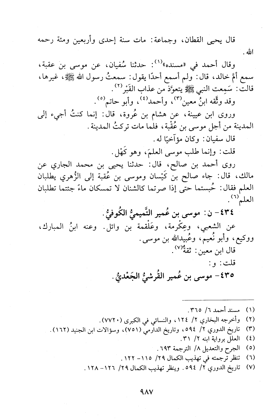 434 - ن: مُوسَى بْنُ عُمَيْرٍ التَّمِيمِيُّ الْكُوفِيُّ [الوفاة: 141 - 150 ه]