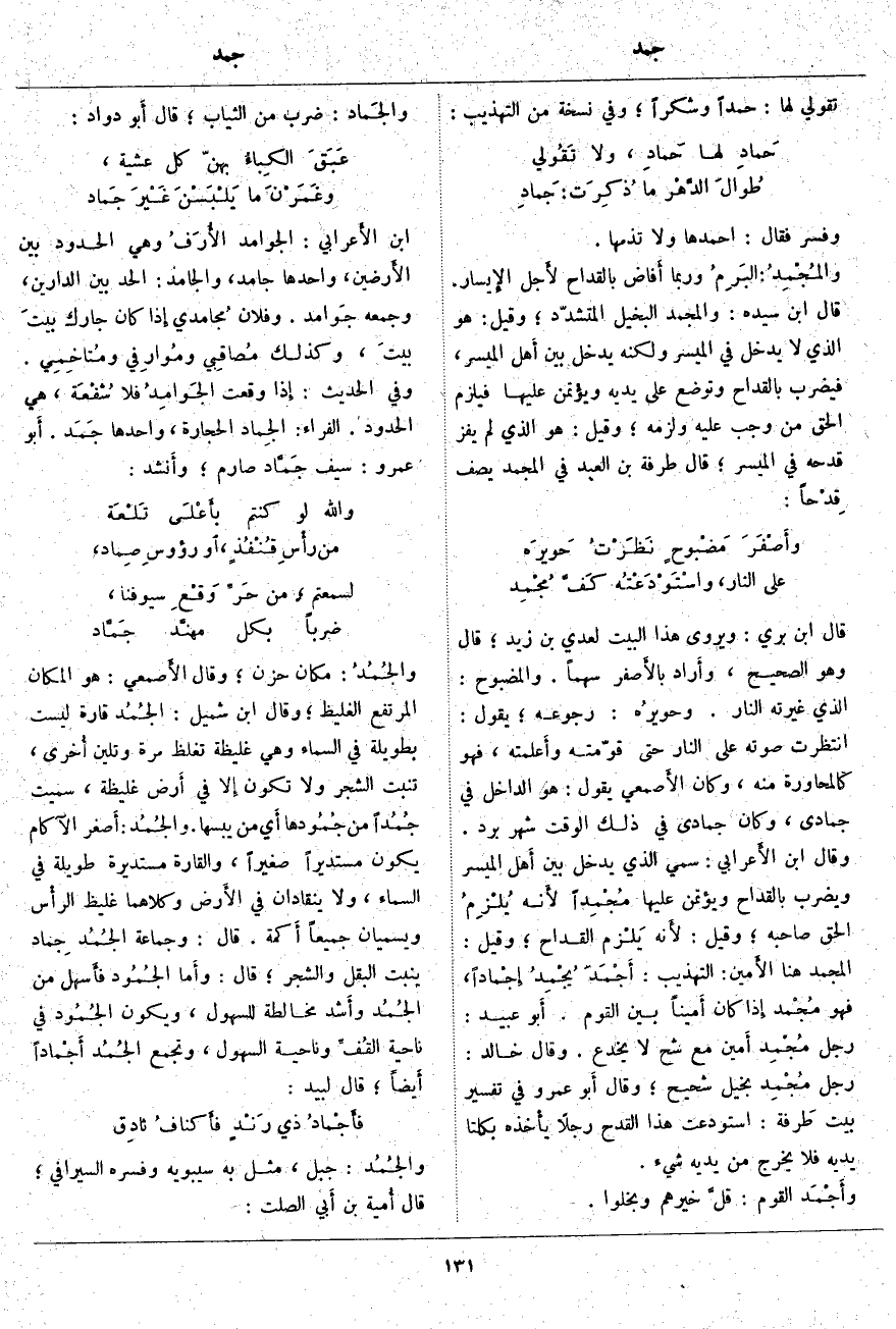 ، هِيَ الْحُدُودُ. الْفَرَّاءُ: الجِماد الْحِجَارَةُ، وَاحِدُهَا جَمَد. أَبو عَمْرٍو: سَيْفٌ جَمَّاد صَارِمٌ؛ وأَنشد: